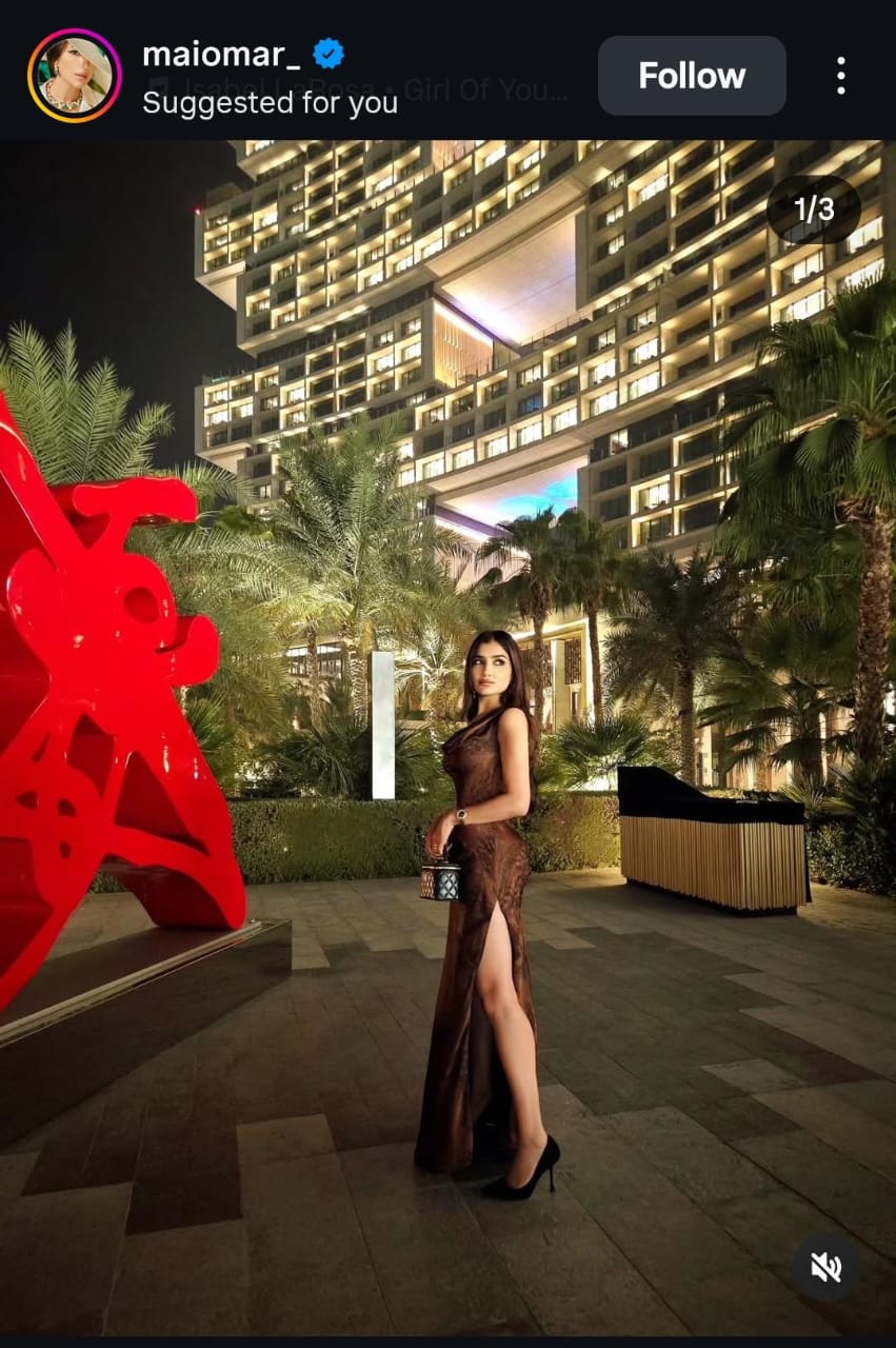 وظهرت مي عمر، بفستان جريء باللون البني بفتحة جانبية لافتة، ولاقت الصور تفاعلًا واسعًا من متابعيها الذين انهالوا بالتعليقات، وجاءت أبرزها: "ما شاء الله على الحلاوة والقمر"، "يا الله على الأناقة والرقي"، "عن جمال التفاصيل أتحدث"، "تحفة"، "تجنني".