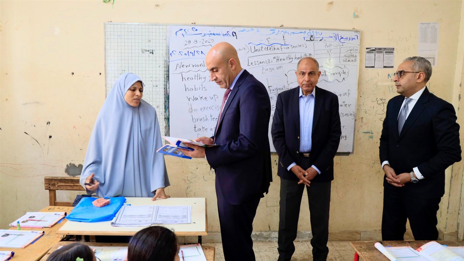 وخلال الجولة، تابع الوزير سير الدراسة داخل الفصول وانتظام حضور الطلاب والمعلمين، ومستوى التحصيل الدراسي، واستلام الكتب الدراسية وكتب التقييمات، موجهاً بمتابعة دفاتر التحضير والتأكيد على الانضباط والجدية خلال اليوم الدراسي.