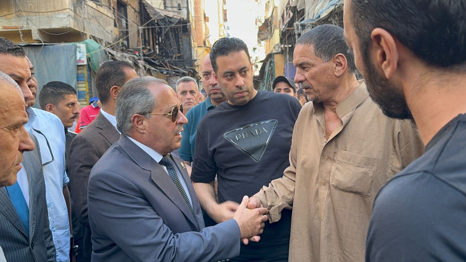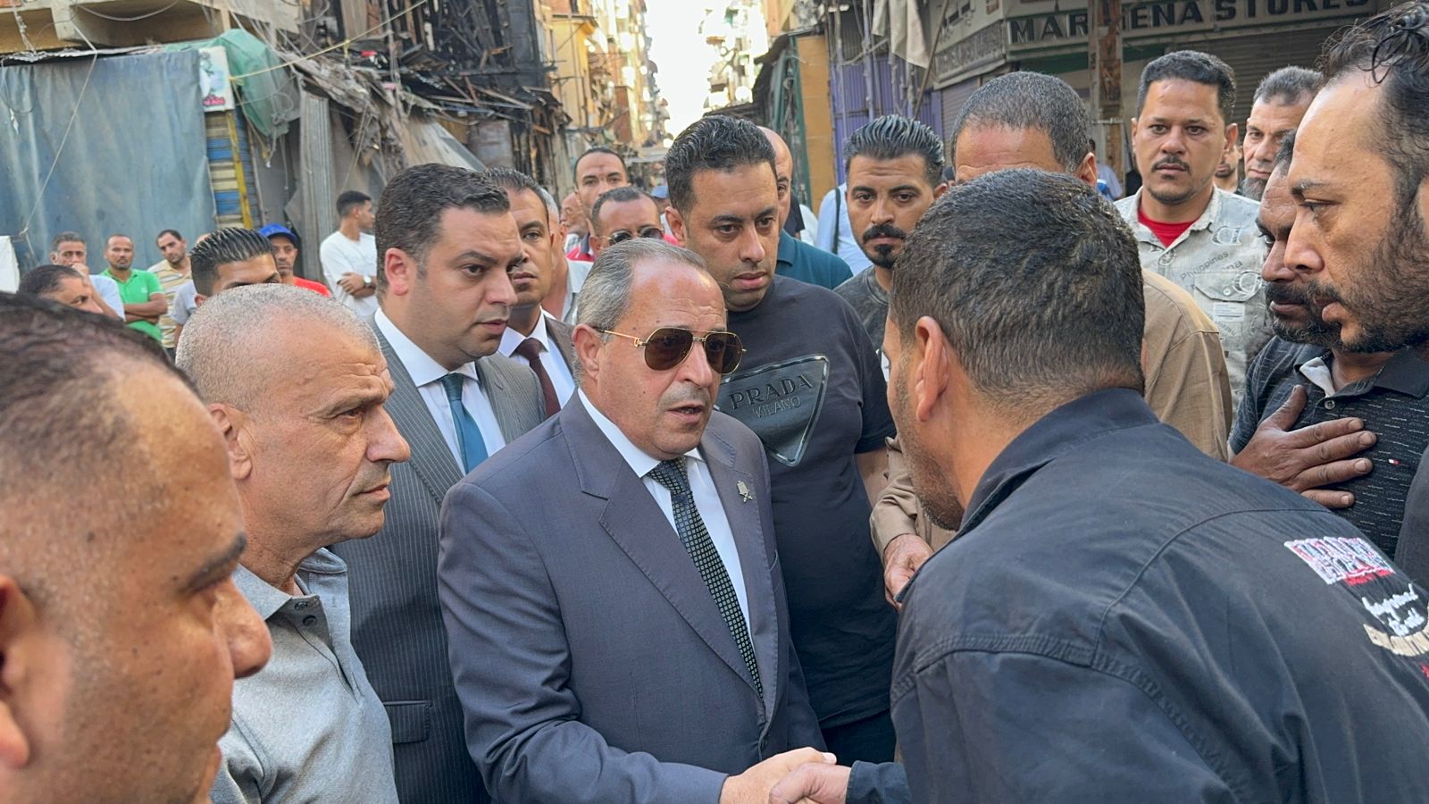 محافظ بورسعيد يقدم العزاء لأسرة ضحية حريق شارع الحميدي بحي العرب