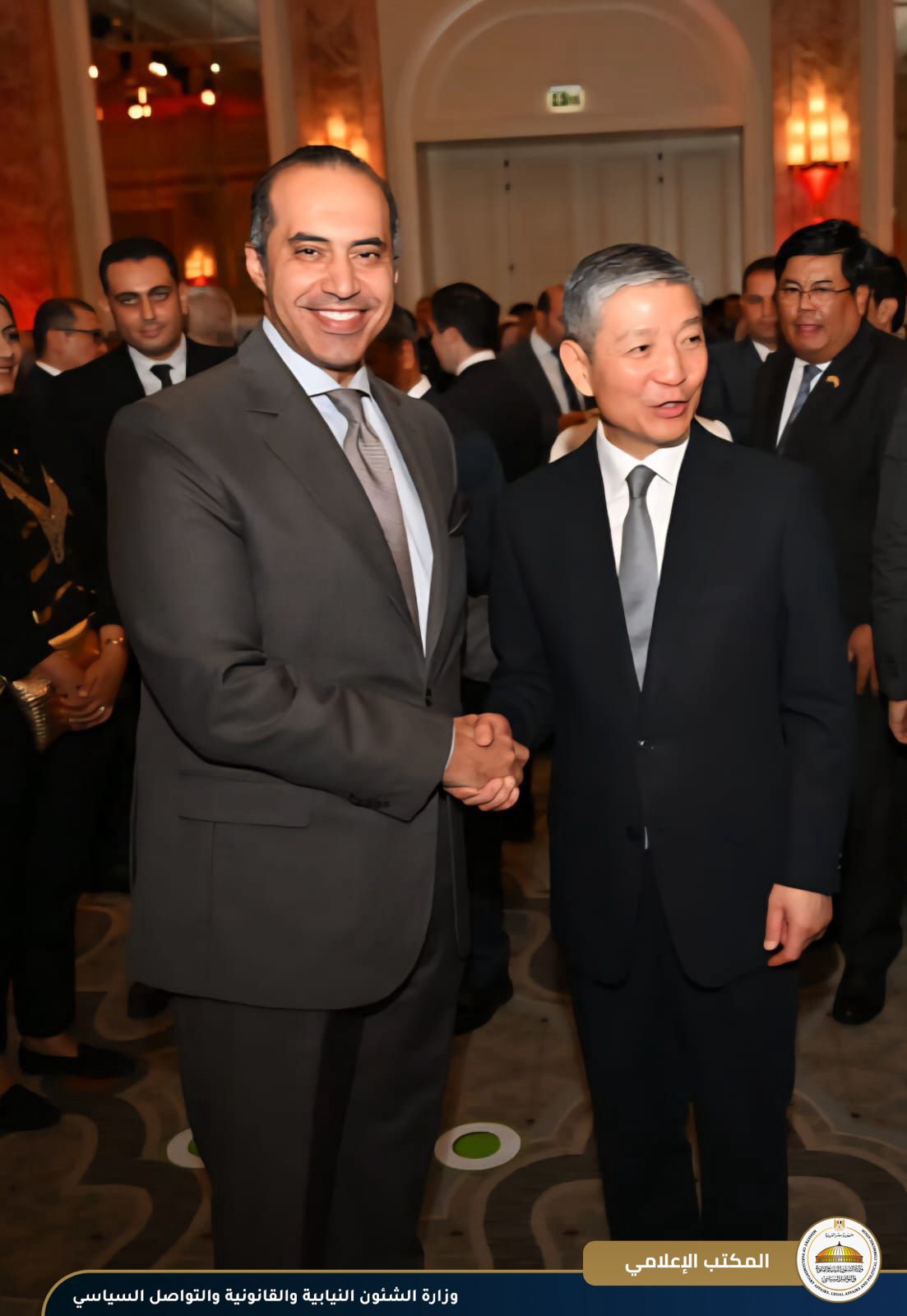 شهد المستشار محمود فوزي وزير الشؤون النيابية والقانونية والتواصل السياسي، احتفال السفارة الصينية في القاهرة باليوم الوطني للصين، اليوم الإثنين 29 سبتمبر 2025، بأحد فنادق القاهرة، بحضور الدكتور عمرو طلعت وزير الاتصالات، نائبًا عن رئيس مجلي الوزراء، ونخبة من الشخصيات العامة.