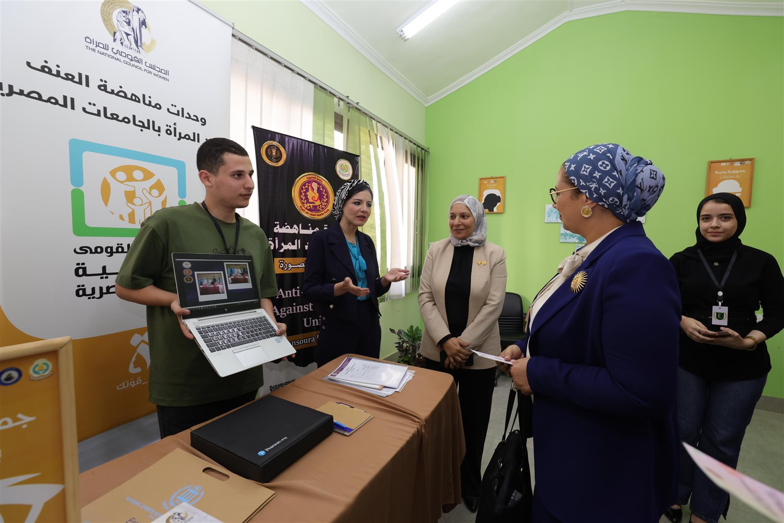 وتفقدت المستشارة أمل عمار وحدة مناهضة العنف ضد المرأة بجامعة المنصورة واسمتعت إلى شرح للهدف منها واليات عملها، حيث تسهم الوحدة في حماية ودعم المرأة المعنفة عبر اتخاذ الإجراءات القانونية اللازمة، فضلا عن تنظيم حملات التوعية وورش العمل المتنوعة للطلاب والطالبات في الجامعة ، كما يتم التعاون و عمل شراكات مختلفة مع العديد من الجهات الشريكة منها صندوق الأمم المتحدة للسكان .
