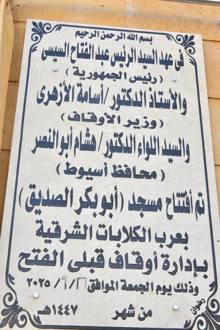 افتتح اللواء دكتور هشام أبو النصر، محافظ أسيوط، مسجد أبو بكر الصديق بقرية عرب الكلابات التابعة لمركز الفتح، عقب الانتهاء من أعمال تطويره وإعادة تأهيله بتكلفة بلغت نصف مليون جنيه بالجهود الذاتية، وذلك في إطار خطة شاملة لتحسين مستوى الخدمات المقدمة للمواطنين وتوفير بيئة مناسبة لأداء الشعائر الدينية، بالتعاون بين وزارة الأوقاف والمشاركة المجتمعية.