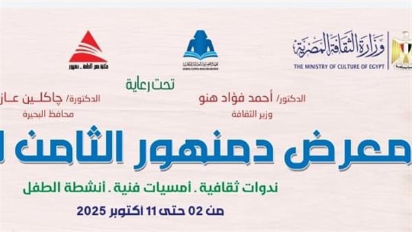 تحت رعاية الدكتور أحمد فؤاد هنو، وزير الثقافة، تستعد الهيئة المصرية العامة للكتاب لافتتاح الدورة الثامنة من معرض دمنهور للكتاب، والمقرر إقامته خلال الفترة من ٢ حتى ١١ أكتوبر المقبل، بمكتبة مصر العامة بمدينة دمنهور، وذلك ضمن احتفالات وزارة الثقافة بانتصار حرب أكتوبر المجيد.
