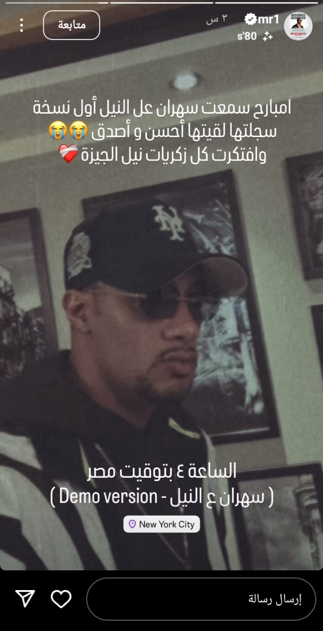 يذكر أن، كتب محمد رمضان عبر صفحته الشخصية بموقع تبادل الصور والفيديوهات القصيرة"انسجرام"امبارح سمعت سهران على النيل أول نسخة سجلتها لقيتها أحسن وأصدق، وافتكرت كل زكريات نيل الجيزة".