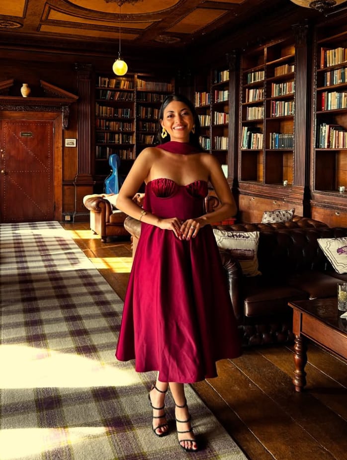 ونشرت عبر صفحتها الشخصية بموقع تبادل الصور والفيديوهات القصيرة"انسجرام"، صورا جديدة لها تجمعها مع زوجها، حيث تألقت بإطلالتها الجاذبه بفستان باللون الأحمر شبيهه بإطلالاته الستنيات، ومع شعر منسدًلا وميكب هادئ يتناسب مع الإطلالة.