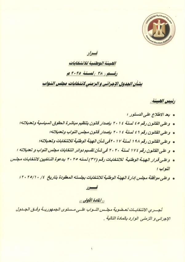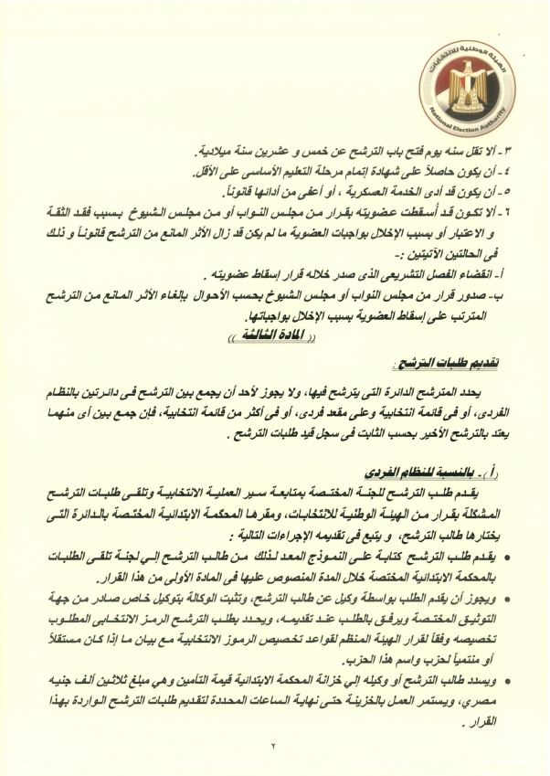 وينص القرار على المادة الثالثة التي تفرض نشره في الجريدة الرسمية، وتكليف المدير التنفيذي للهيئة الوطنية للانتخابات بتطبيقه فورًا.