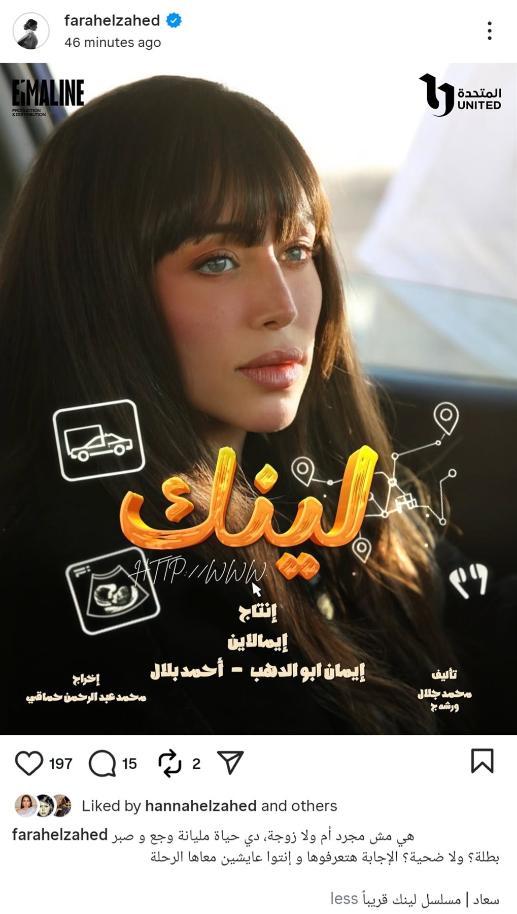 ونشرت فرح الزاهد البوستر الرسمي لها في مسلسل لينك، من خلال حسابها الرسمي عبر موقع تبادل الصور والفيديوهات القصيرة إنستجرام، وكتبت: "هي مش مجرد أم ولا زوجة، دي حياة مليانة وجع وصبر بطلة؟ ضحية؟.. الإجابة هتعرفوها وانتو عايشين معاها الرحلة.. سعاد.. مسلسل لينك قريبًا".