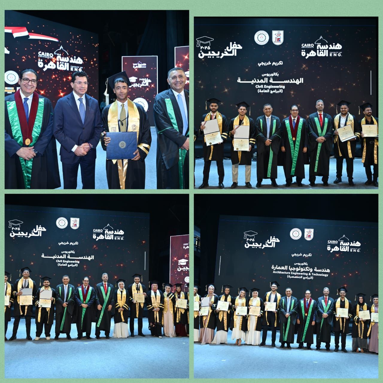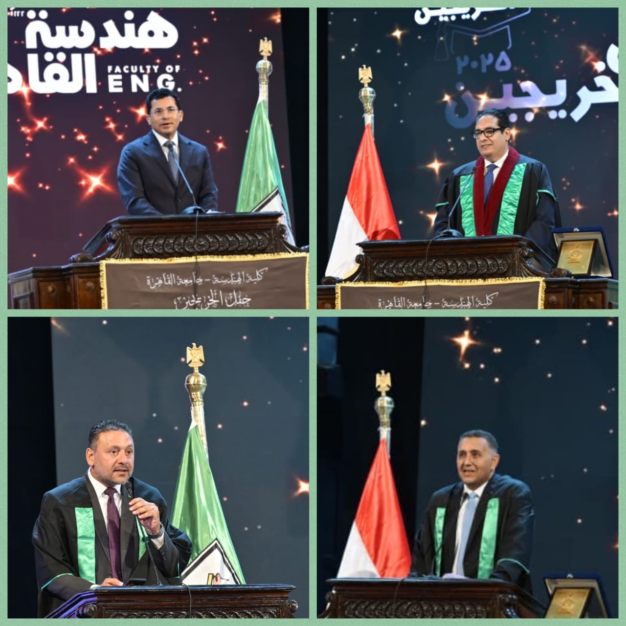 شهدت قاعة الاحتفالات الكبري بجامعة القاهرة تحت رعاية وحضور د. محمد سامي عبد الصادق رئيس الجامعة، حفل خريجي كلية الهندسة دفعة 2025، وتكريم الرودا من دفعة 1975، بحضور د.أشرف صبحي وزير الشباب والرياضة، ود. فاروق إسماعيل رئيس جامعة القاهرة الأسبق، ود. محمد العطار نائب رئيس جامعة القاهرة الأهلية للشئون الأكاديمية،ود.حسام عبدالفتاح عميد كلية الهندسة، ود.عادل عبد الغفار المستشار الإعلامي والمتحدث الرسمي لوزارة التعليم العالي والبحث العلمي، والمهندس محمد مجدي الحسيني نائبًا عن نقيب المهندسين، ووكلاء الكلية، وأعضاء هيئة التدريس، والخريجين وأسرهم.