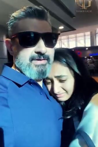 بالدموع.. لحظات مؤثرة بين ياسر جلال و أبنته قدرية قبل سفرها للخارج