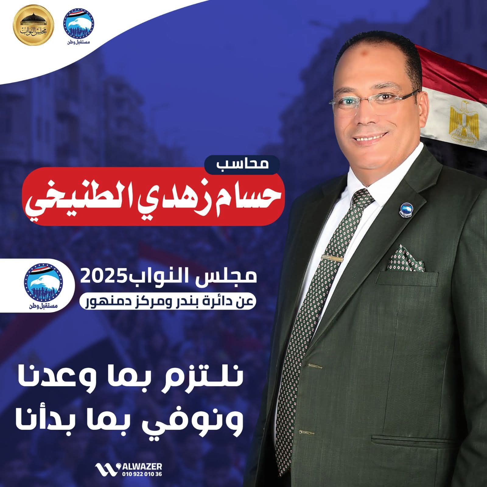 أعلن المحاسب حسام زهدي الطنيخي، أمين العلاقات الحكومية لحزب مستقبل وطن بمحافظة البحيرة، عدوله عن قرار الترشح للانتخابات البرلمانية المقبلة، وذلك بعد يومين فقط من إعلان نيته خوضها، مؤكدًا أن قراره جاء بعد وقفة وتريث وتقدير دقيق للظروف الحالية داخل العائلة والدائرة الانتخابية.