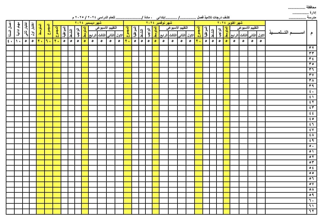 توزيع درجات أعمال السنة 2025 في الابتدائي والإعدادي والثانوي