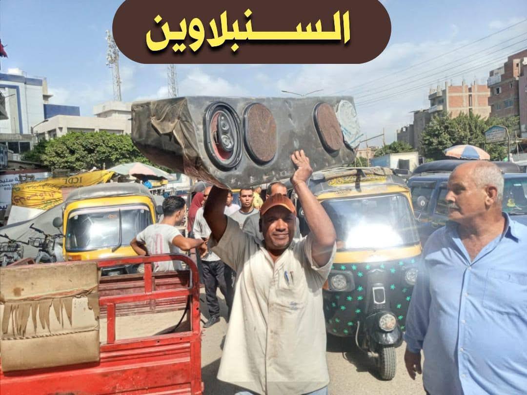 وتنفيذا لتكليفات اللواء طارق مرزوق محافظ الدقهلية، قام الأستاذ أحمد عبد العظيم رئيس مركز ومدينة السنبلاوين، بمتابعة حملة على التكاتك وأجهزة الصوت بشوارع المدينة، بإشراف إدارة الإشغالات والحملة الميكانيكية والإنارة والمواقف وشئون البيئة والإدارات المعنية، وأسفرت عن ضبط ومصادرة 5 جهاز بازوكا صغير، 13 سماعات داخل تابلوهات خشب، 20 سماعة صوت، جهاز mp3.