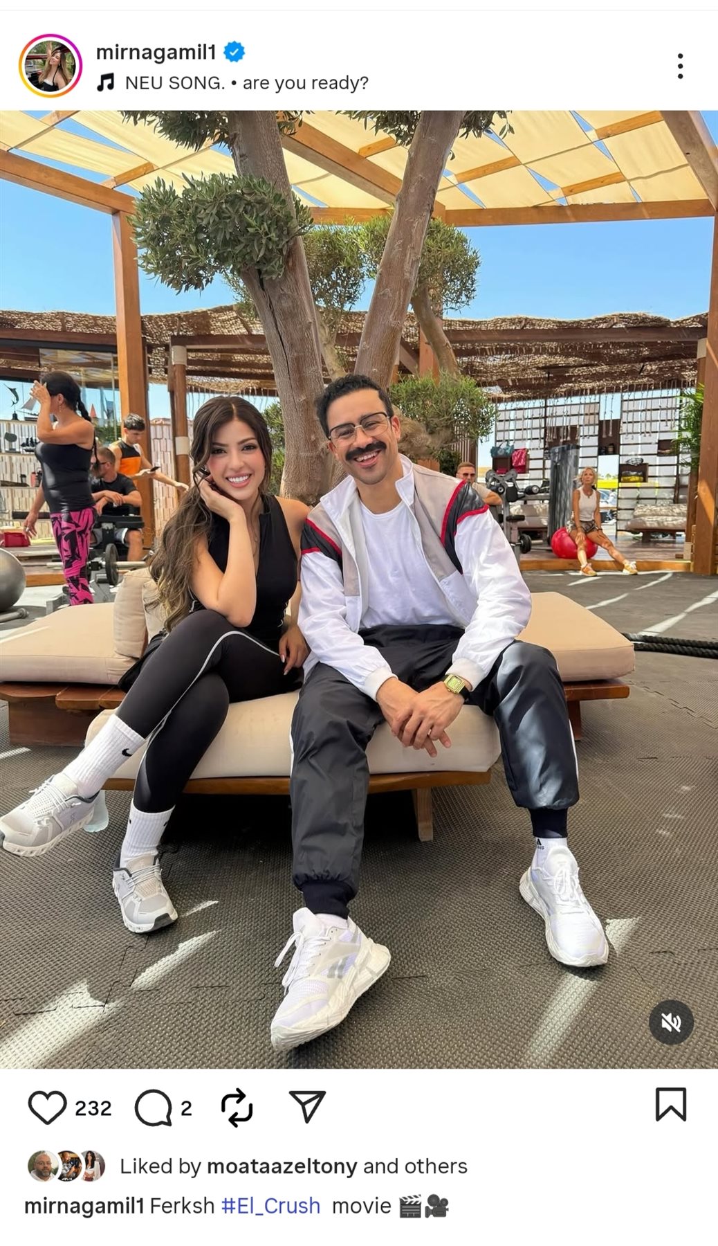 ونشرت ميرنا جميل الصورة، من خلال حسابها الرسمي عبر موقع تبادل الصور والفيديوهات القصيرة إنستجرام، وكتبت: "فيلم الكراش".