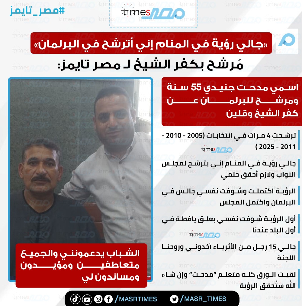 وقال جنيدي في تصريح خاص لـ مصر تايمز إن خوضه للانتخابات هذه المره هي الرابعة، فقد سبق له وترشح في أعوام 2005 و2010 و2011 مؤكدًا أن ترشحه الحالي 2025 جاء بعد رؤية رآها في المنام.