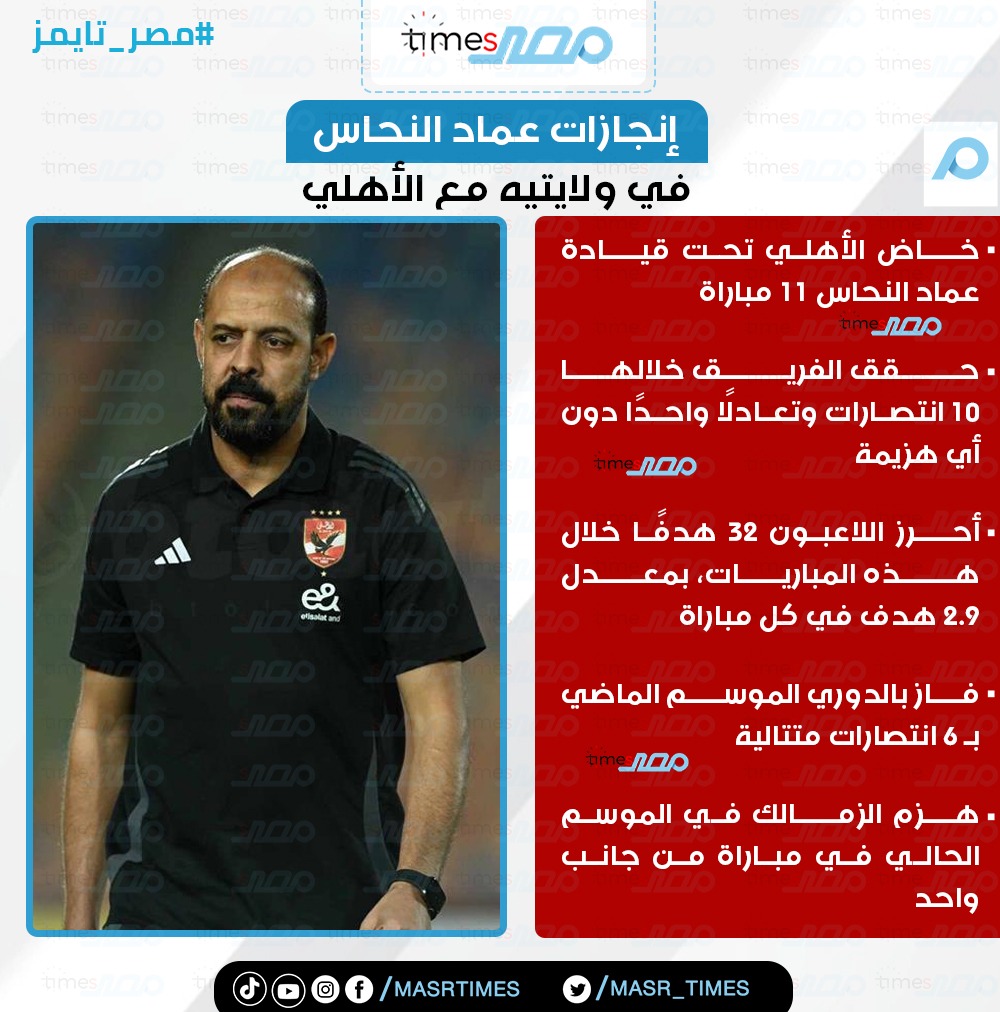 من التعادل إلى القمة.. رحلة النحاس مع الأهلي بالأرقام