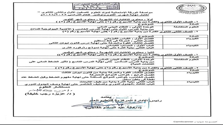 حددت الوزارة أن امتحان شهر أكتوبر في مادة العلوم للمرحلة الثانوية يجب أن يغطي جميع نواتج التعلم الواردة في المنهج الدراسي حتى نهاية الشهر الجاري، وذلك بما يتناسب مع التوزيع الزمني المعتمد في الخطة الدراسية الرسمية.