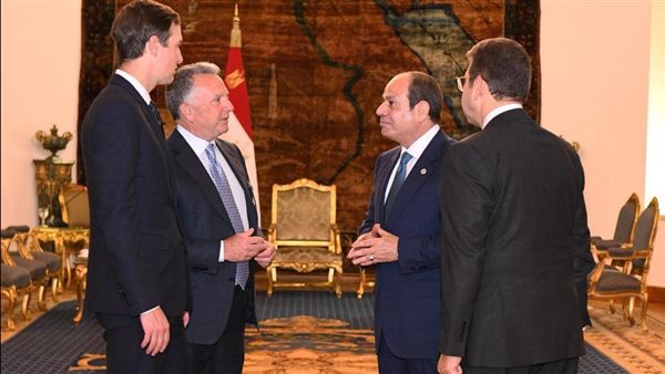 استقبل الرئيس عبد الفتاح السيسي، اليوم في قصر الاتحادية، ستيفن ويتكوف، المبعوث الخاص الأمريكي للشرق الأوسط، وجاريد كوشنير كبير مستشاري رئيس الولايات المتحدة الأمريكية، موفدا الرئيس ترامب المشاركين في مفاوضات وقف إطلاق النار في قطاع غزة، وذلك بحضور السيد اللواء حسن رشاد، رئيس المخابرات العامة، والسفيرة هيرو مصطفى، سفيرة الولايات المتحدة الأمريكية بالقاهرة.