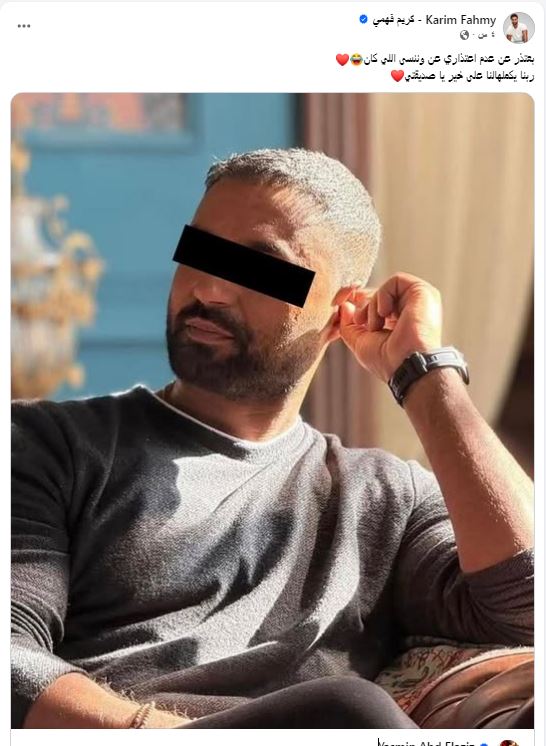 وأعاد كريم فهمي منشور الفنانة ياسمين عبد العزيز التي نشرته عبر صفحتها الرسمية "فيس بوك" حيث مازحت متابعيها بعدما نشرت صورته، وعلّقت عليها قائلة: "خمنوا مين بطل مسلسل وننسى اللي كان؟" وكتب فهمي عليه " بعتذر عن عدم اعتذاري عن وننسى اللي كان ربنا يكملهالنا على خير يا صديقتي".