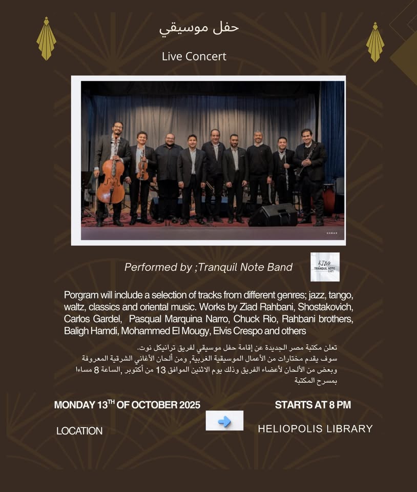 غدًأ.. مكتبة مصر الجديدة تستضيف فرقة ترانكيل نوت باند