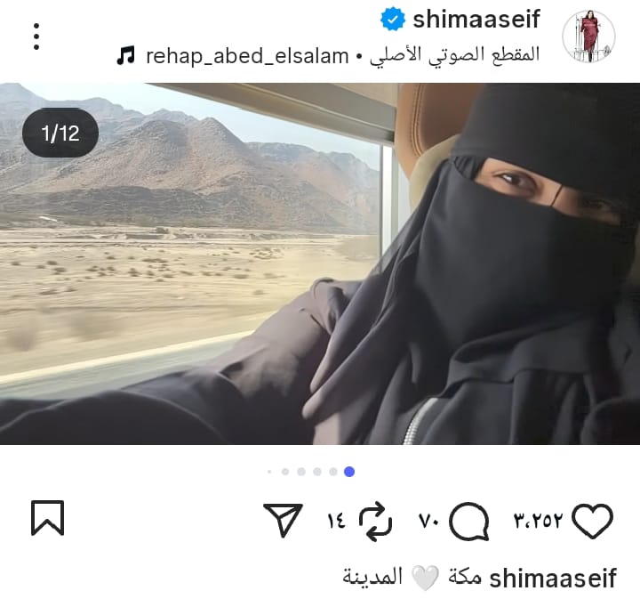 ونشرت شيماء سيف صور جديدة من رحلتها الإيمانية عبر موقع تبادل الصور والفيديوهات القصيرة"انسجرام"، ودعا لها الأصدقاء والجمهور بتقبل العمرة.