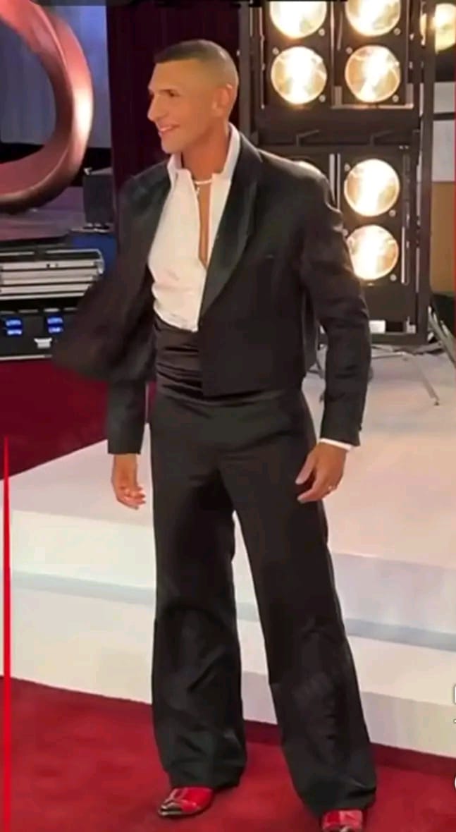 وظهر حسن أبو الروس ببدلة تفصيلها كان يبدو غريب و شوز حمراء، مما أنتقد رواد السوشيال ميديا هذه الإطلالة، وأرتدى الفنان نيقولا معوض بدلة لامعة.