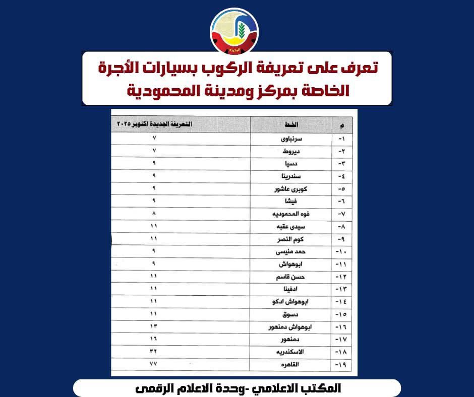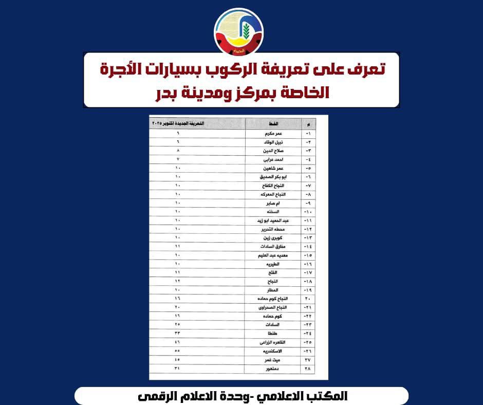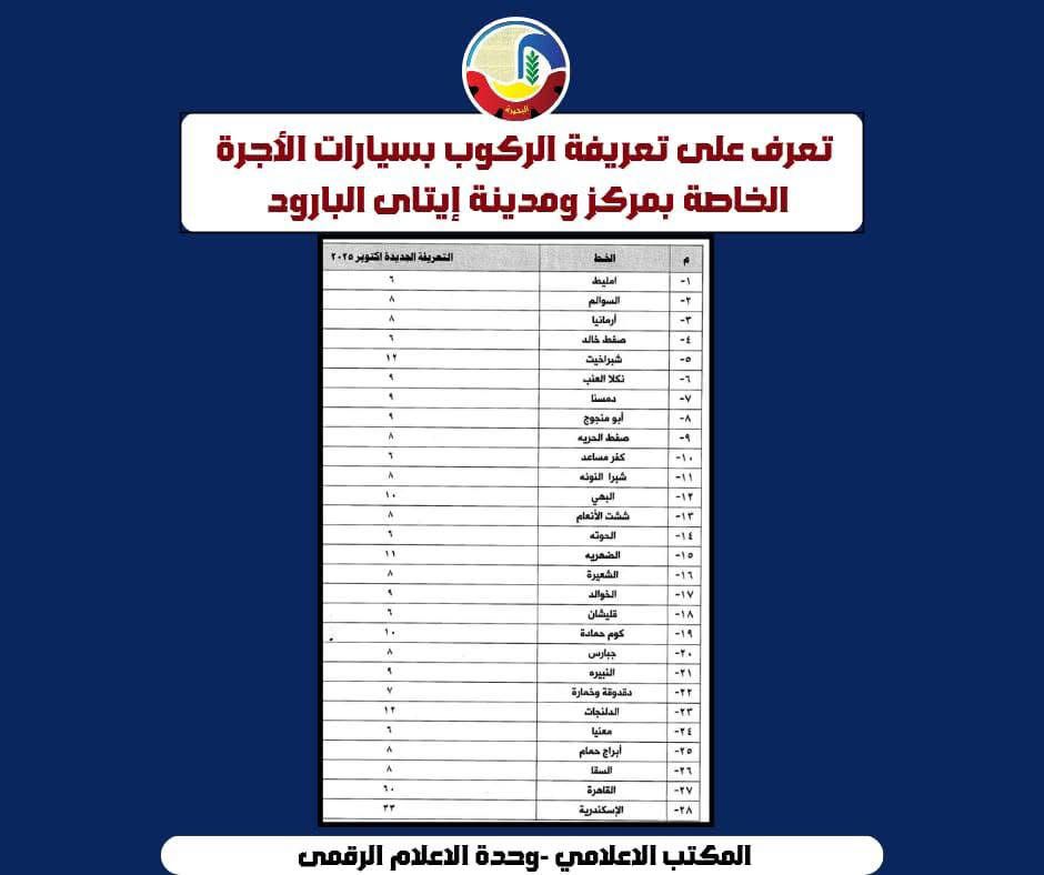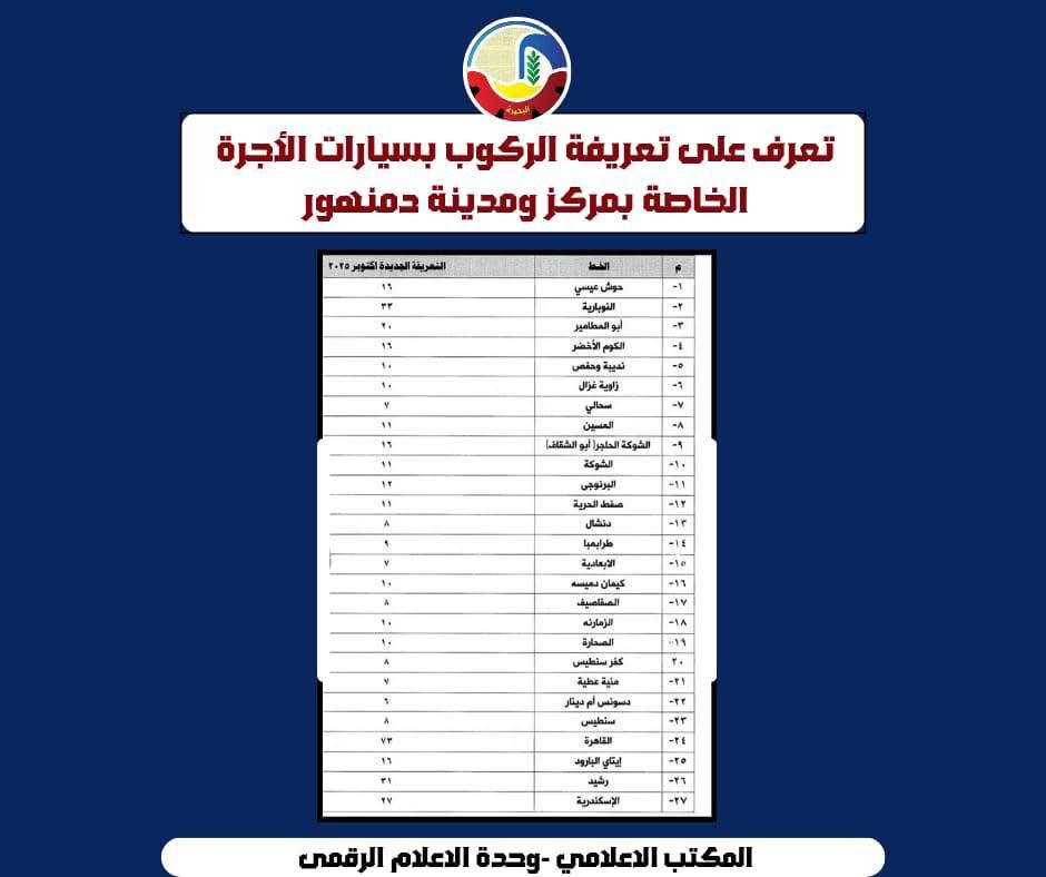 محافظ البحيرة تعتمد تعريفة الركوب الجديدة للأجرة والسرفيس والنقل العام