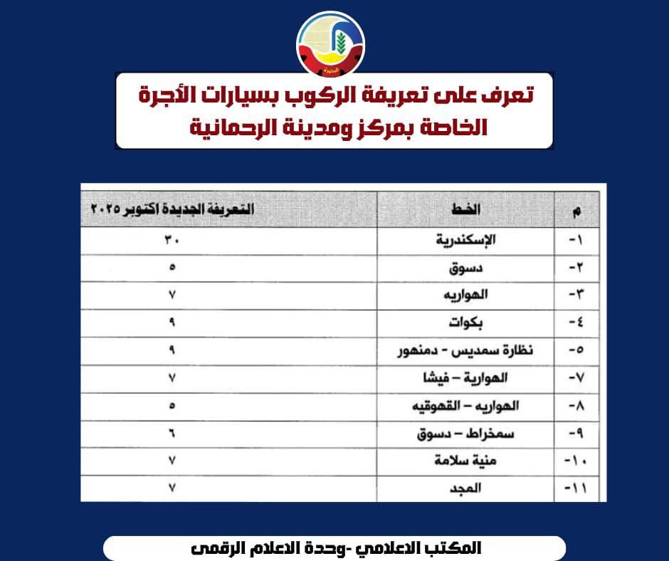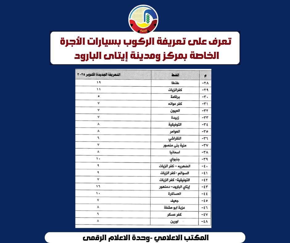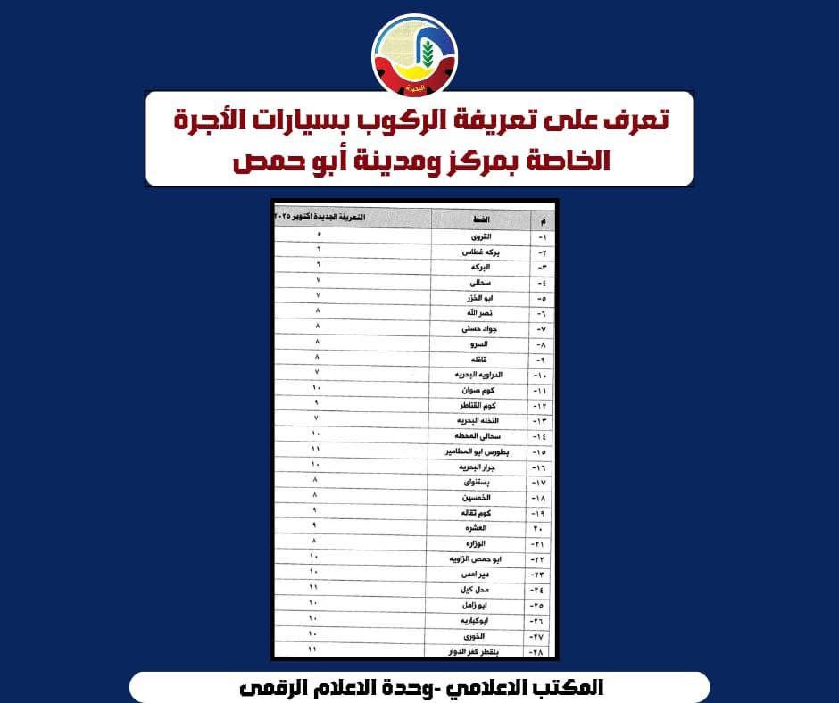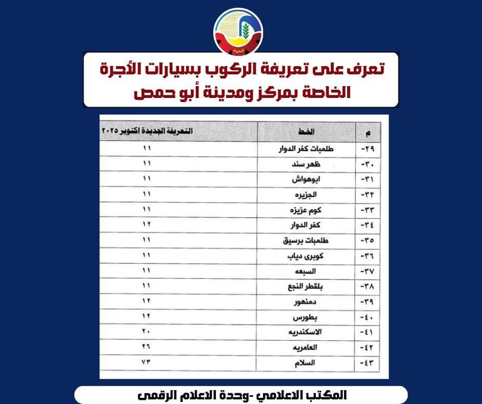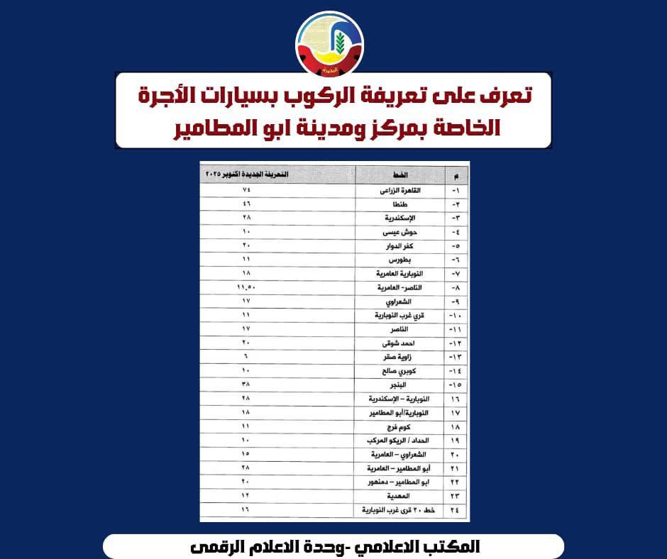 محافظ البحيرة تعتمد تعريفة الركوب الجديدة للأجرة والسرفيس والنقل العام