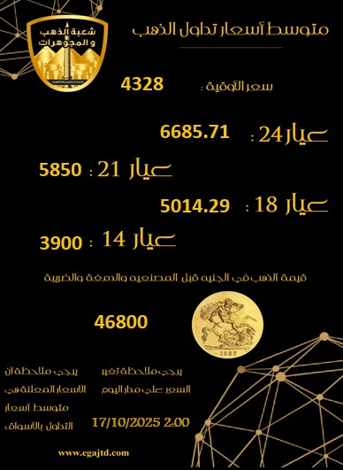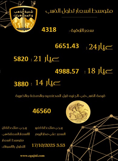 اقرأ أيضًا: سعر الجنيه الذهب اليوم الجمعة 17 أكتوبر 2025 بعد الارتفاع القياسي عالميا