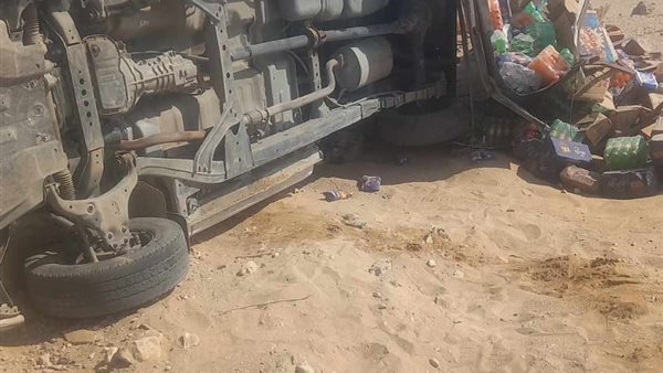 انقلاب سيارة نقل محملة بالمواد الغذائية في طريق نجع حمادي - قنا الصحراوي