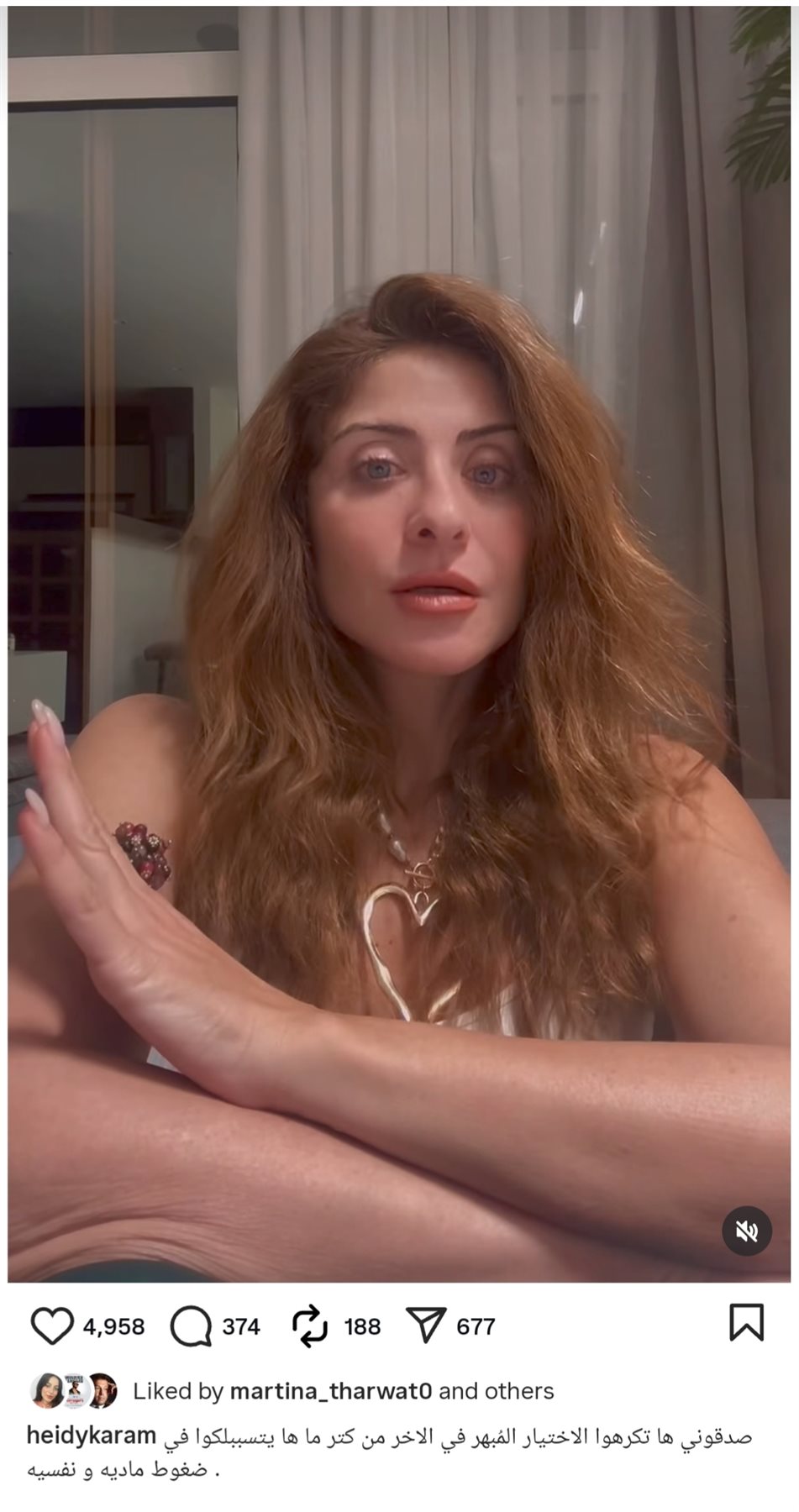 وكتبت هيدي كرم على مقطع الفيديو الخاص بها: صدقوني ها تكرهوا الاختيار المُبهر في الاخر من كتر ما ها يتسببلكوا في ضغوط ماديه و نفسيه.