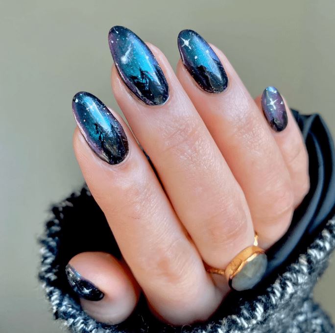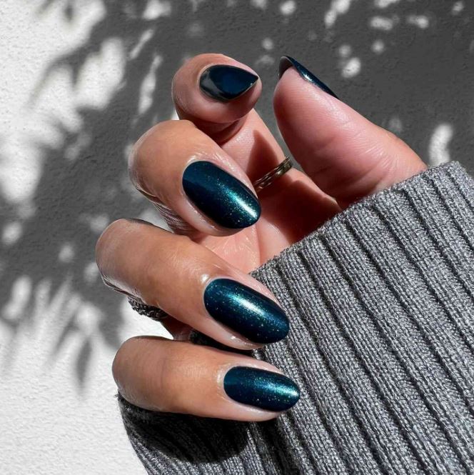 صيحة المناكير الأزرق الياقوتي، الذي ويتميز هذا اللون الغني والعميق بلمعانه الفاخر.