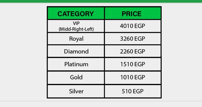 وجاءت أسعار التذاكر كالتالي: