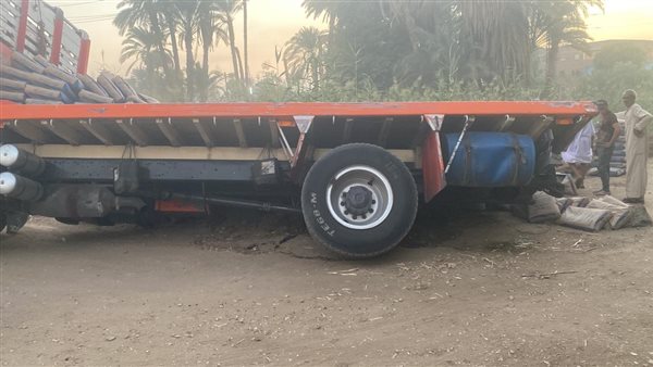 انقلاب حمولة تريلا على الطريق في قنا بسبب هبوط أرضي