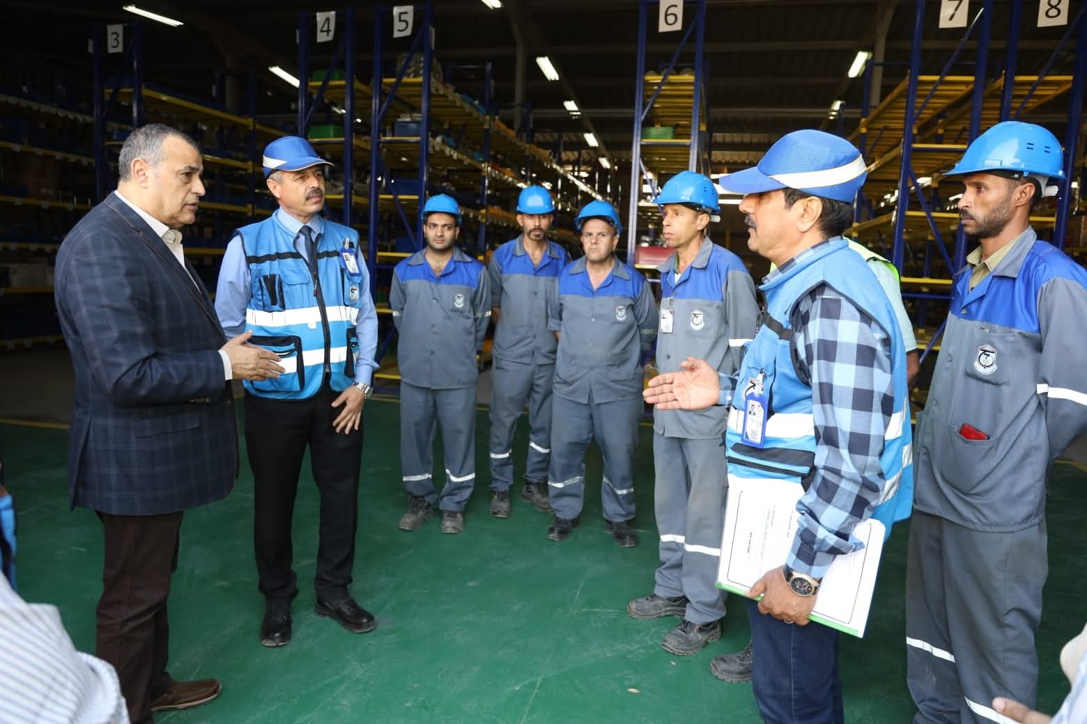 وخلال الجولة استمع الوزير "محمد صلاح" إلى ما إستعرضه المهندس محمد أحمد العصفوري رئيس مجلس إدارة "حلوان للآلات والمعدات" وكذا أطقم العمل بالشركة من بيانات ومعلومات حول الموقف التنفيذي للمشروعات التي تنفذها الشركة ومدى الإلتزام بتوقيتات تنفيذها ومعدلات الإنتاج والأداء خلال الفترة السابقة وموقف المخزون.