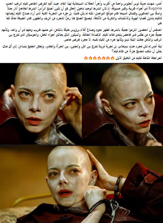 تصدر فيلم Bugonia مواقع التواصل الإجتماعي وذلك بعد وضع شرط غريب لحضوره وهو يجب على جميع الحاضرين أن يكونوا صُلعًا أو يقوموا بحلاقة رؤوسهم قبل دخول القاعة.