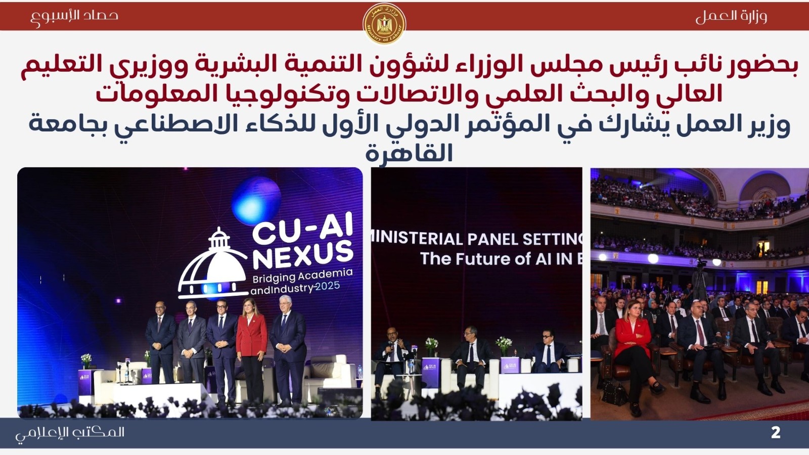 قال :نحن ماضون في بناء مستقبل رقمي يليق بمكانة مصر وتاريخها ويحقق جودة حياة أفضل لكل مواطن..جاء ذلك خلال مشاركة وزير العمل في فعاليات المؤتمر الدولي الأول للذكاء الاصطناعي، مؤكدًا أن الوزارة تتبنى استراتيجية للتحول الرقمي وتمكين الكوادر بالمهارات المستقبلية، شملت ميكنة خدمات إصدار كعب العمل إلكترونيًا، وتطوير منصة العمالة غير المنتظمة، وتفعيل الربط الإلكتروني مع دول عربية، وتحديث منظومة اختبارات مزاولة المهن لمواءمة المهارات مع احتياجات السوق.
