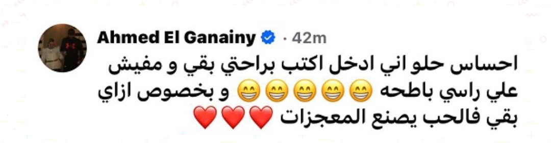 أحمد الجنايني يرد على منة شلبي بعد إعلان زواجهما: الحب يصنع المعجزات