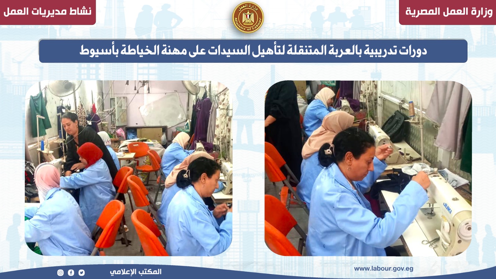 7-تدريب السيدات بالعربة المتنقلة لتأهيلهن على مهنة الخياطة بأسيوط