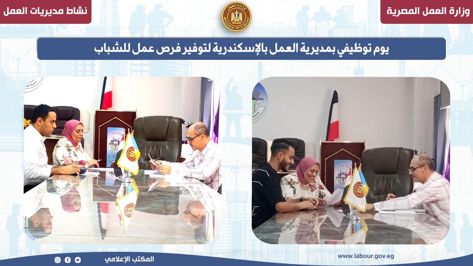 نظمت مديرية العمل بالإسكندرية يومًا توظيفيًا بمقر المديرية بالتنسيق مع إحدى شركات الإنشاءات والصناعة لتوفير فرص عمل للشباب وإجراء المقابلات الشخصية للمتقدمين.