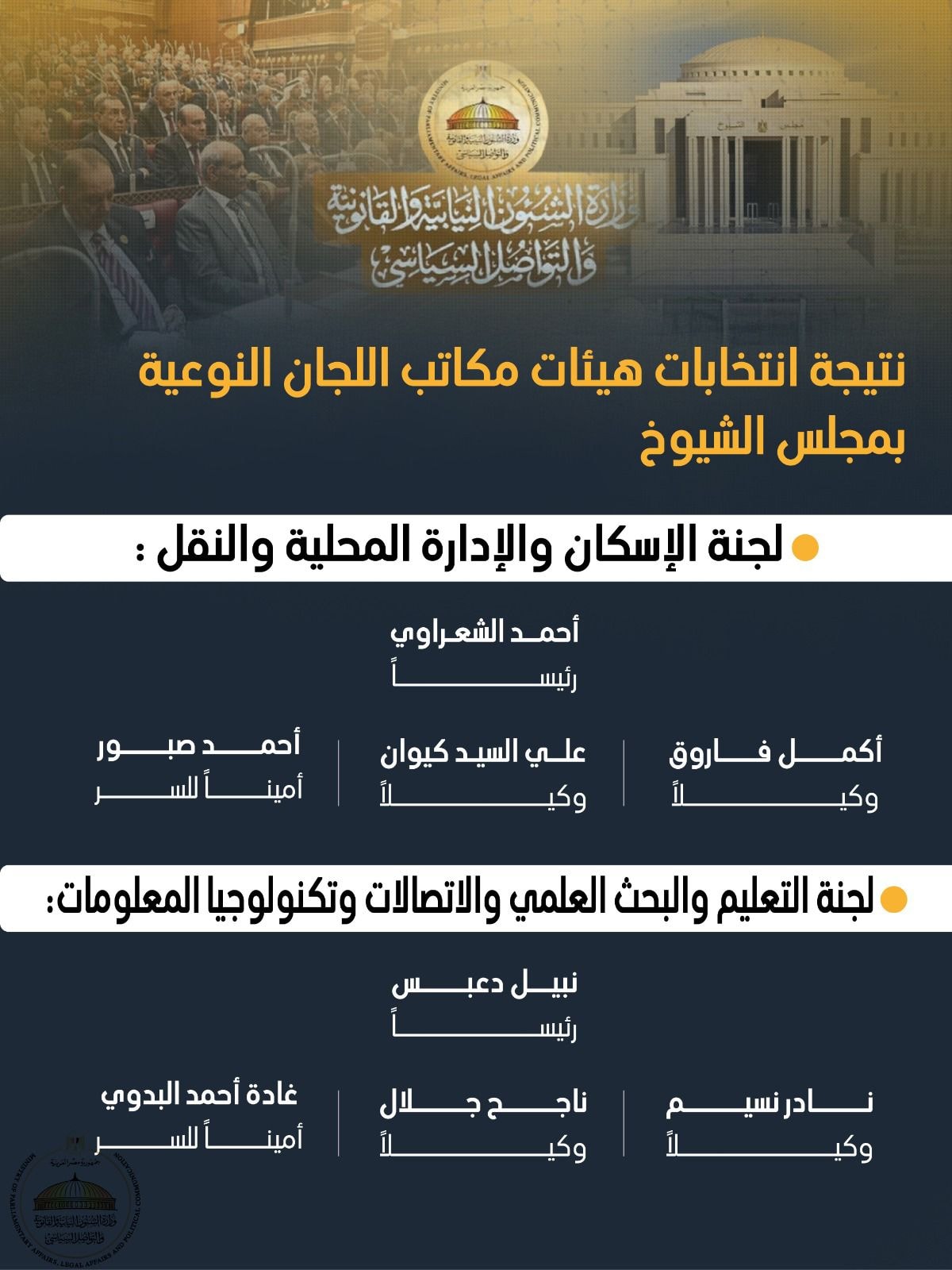 مجلس الشيوخ يعتمد التشكيل الكامل للجان النوعية في بداية دور الانعقاد| انفوجراف
