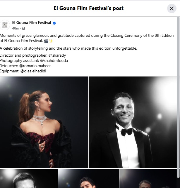 وكتب القائمون عليها، من خلال موقع التواصل الاجتماعي فيسبوك:لحظاتٌ من الرقيّ والتألق والامتنان التُقطت خلال حفل ختام الدورة الثامنة من مهرجان الجونة السينمائي، وذلك احتفالاً برواية القصص وبالنجوم الذين جعلوا هذه الدورة لا تُنسى.