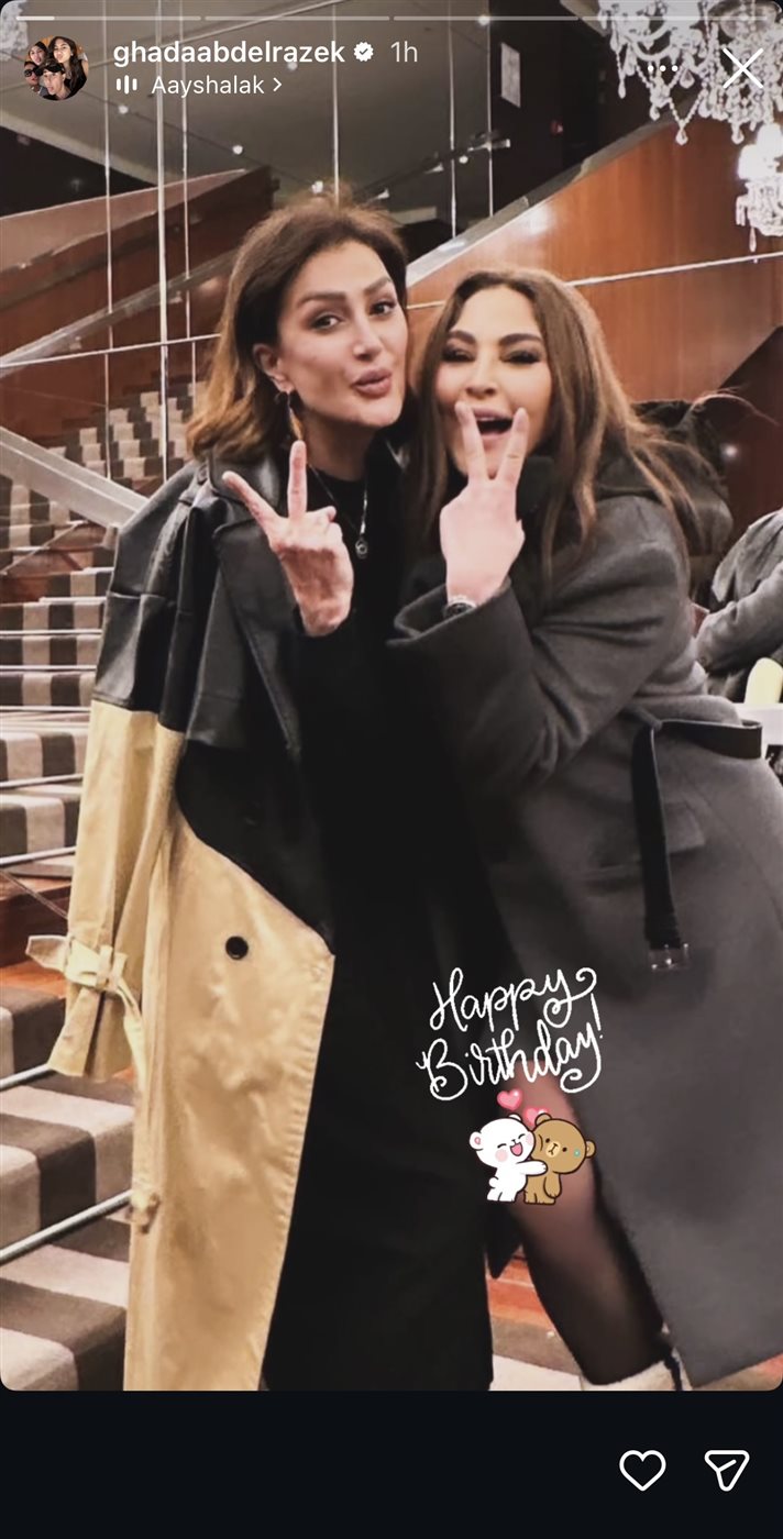 شاركت النجمة غادة عبد الرازق، صورة تجمعها مع إليسا، عبر خاصية "ستوري" بحسابها الشخصي على موقع “إنستجرام”، وعلقت عليها قائلة: “عيد ميلاد سعيد”.