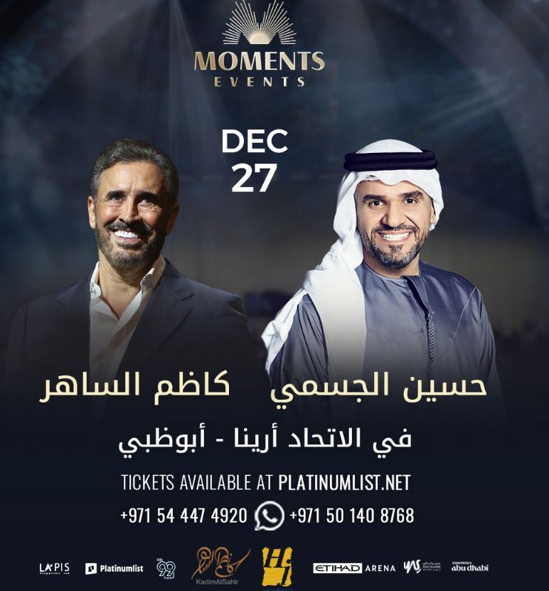 عاجل| أسعار تذاكر حفل حسين الجسمي وكاظم الساهر في أبو ظبي