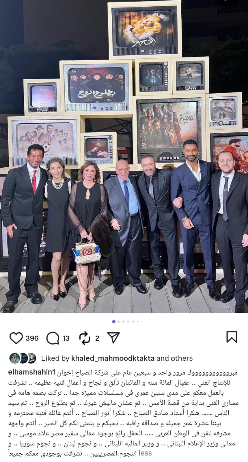 ونشرت إلهام شاهين صور تجمعها بأصدقائها أثناء الاحتفالية، وذلك من خلال حسابها الرسمي عبر موقع تبادل الصور والفيديوهات القصيرة إنستجرام، وعلقت: مبروووووووووووك مرور واحد و سبعين عام على شركة الصباح إخوان للإنتاج الفني.. عقبال المائة سنه و المائتان تألق و نجاح و أعمال فنيه عظيمه.. تشرفت بالعمل معكم على مدى سنين عمرى فى مسلسلات مميزه جدا.. تركت بصمه هامه فى مسارى الفنى بداية من قصة الأمس.. ثم عشان ماليش غيرك.. ثم بطلوع الروح.. ثم سيد الناس.