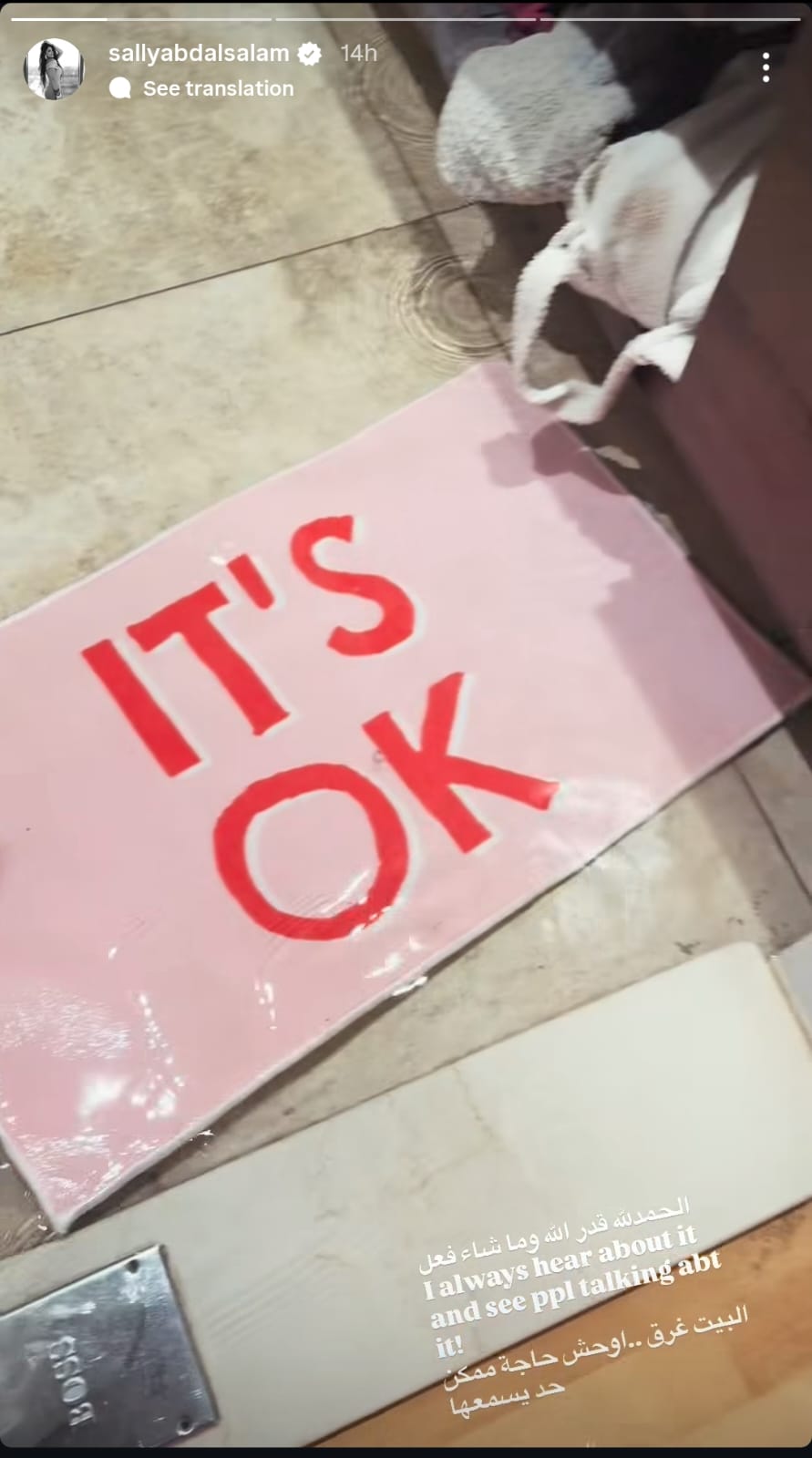 وعلقت سالي على الستوري، قالت: قدر الله وماشاء فعل.. البيت غرق.. أوحش حاجة ممكن حد يسمعها.
