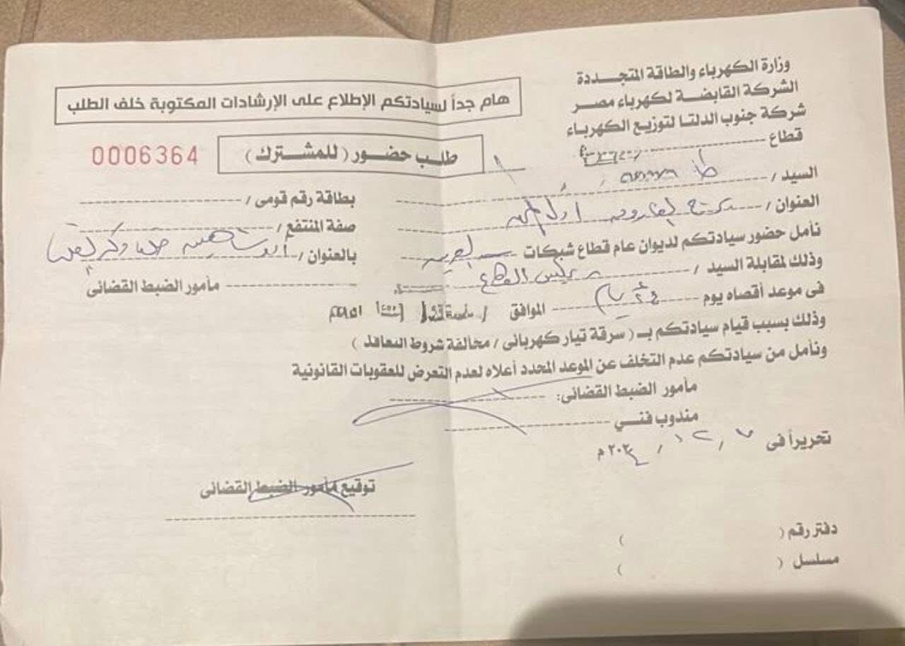 وبناء على الفحص الفني الذي أُجري في الحال، تأكدت اللجنة أن ما يجرى يمثل سرقة تيار مباشر، ليتم تحرير محضر إثبات حالة وتسجيل المخالفة برقم 24133، مع تحديد قيمة المهدر من الكهرباء بمبلغ 111 ألفًا و135 جنيهًا وفقًا لتقديرات رسمية مثبتة في الإيصال رقم 0006364.