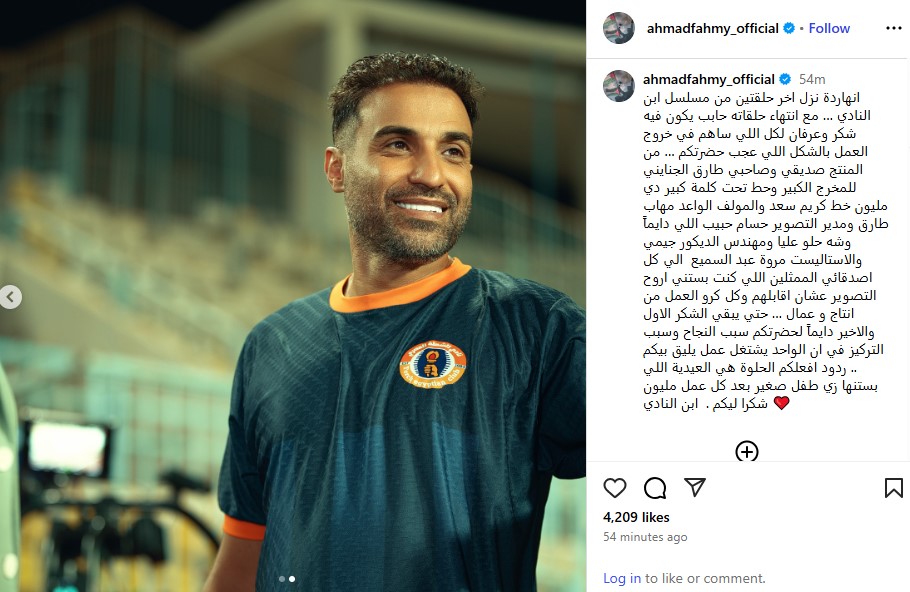 بعد نجاحه.. أحمد فهمي يوجه رسالة شكر لـ صناع وجمهور مسلسل ابن النادي