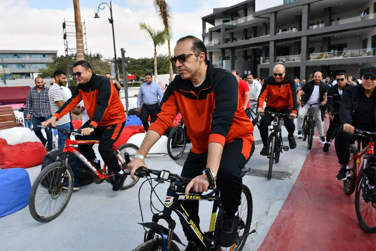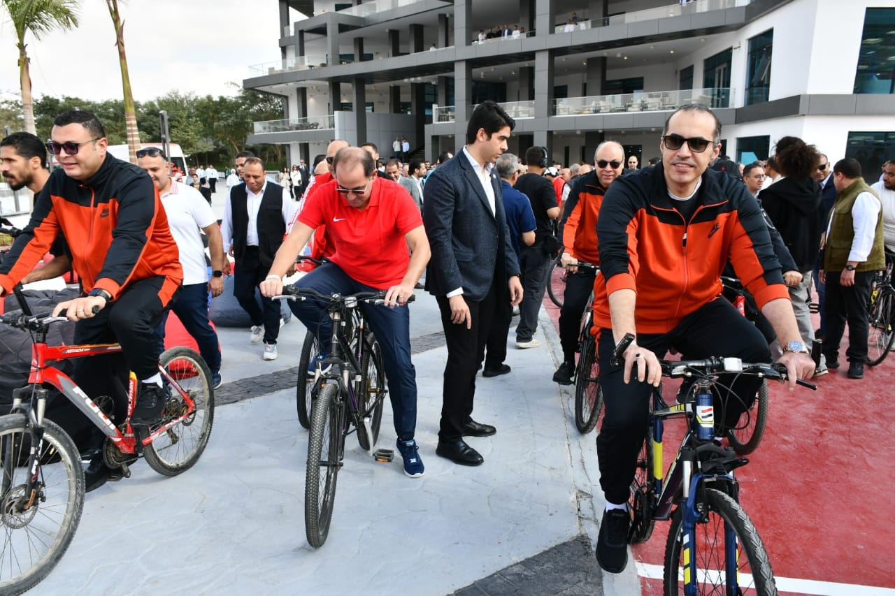 حيث قام السادة الوزراء بجولة داخل أرجاء النادي بالدراجات، الذي أُقيم على أحدث الطرز الإنشائية ويضم مجموعة متكاملة من المنشآت الرياضية والخدمية والاجتماعية، منها ملاعب كرة القدم الخماسية والتنس والاسكواش، ومجمع حمامات السباحة، وصالة الجيمانيزيوم، والمبنى الاجتماعي، والمطاعم والكافيتريات، بما يجعله نموذجاً متكاملاً للأندية الحديثة التي توفر خدمات متكاملة للأعضاء وروادها من مختلف الفئات العمرية، اعقبها مباراة كرة قدم بين السادة الوزراء.