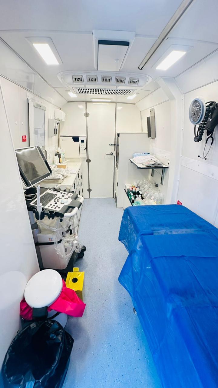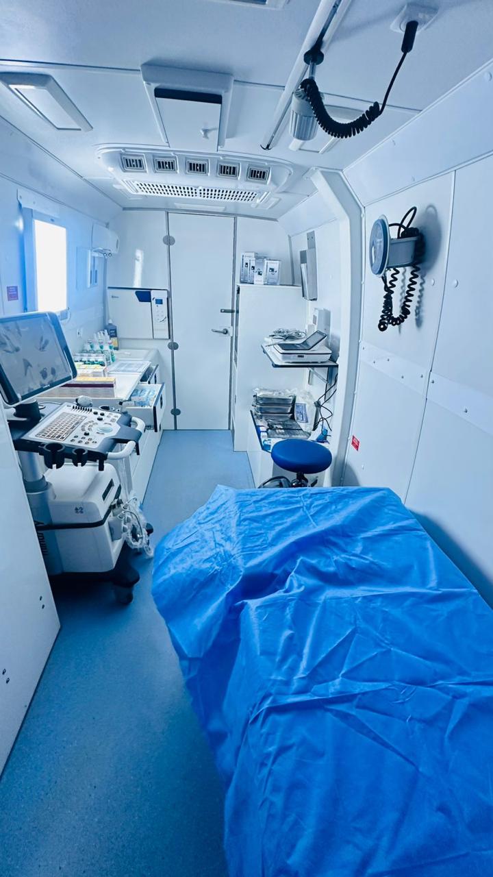 • عيادة طبية ثابتة مُجهزة بأحدث الأجهزة (رسم قلب، مونيتور، سونار) وطواقم طبية متخصصة (استشاريو رعاية حرجة، أخصائيو طوارئ، إلخ)