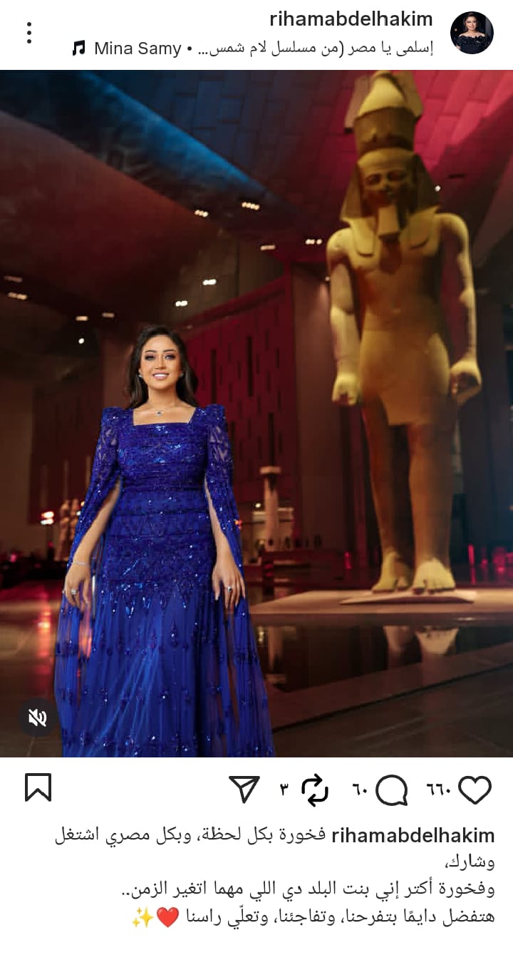 ريهام عبد الحكيم تشارك احتفالية المتحف الكبير